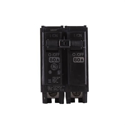 GE Q-Line® THQL2180 Type THQL Compact Molded Case Circuit Breaker, 120/240 V AC, 80 A, 10 kA Interrupt, 2 Poles, Thermal Magnetic Trip