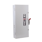 Designed for residential and light commercial applications where duty is not severe. listed to UL standard 98 enclosed and dead front switches. suitable for use as service equipment when installed in accordance with the national electrical code certified to CSA standard 22.2 no 4-04 enclosed and dead front switches. meets or exceeds NEMA KS1 standard for enclosed switches - type GD. fusible and non-fusible switches available (consult BuyLog for interrupt ratings). quick-make, quick-break mechanism (30 to 200 A). 60/75 deg C conductor rating.