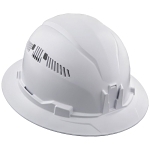 Klein® 60401 Type 1 Full Brim Vented Hard Hat, SZ 6-1/2 Fits Mini Hat, SZ 8 Fits Max Hat, ABS/Polycarbonate, 4-Point Reverse Donning Suspension, ANSI Electrical Class Rating: Class C, ANSI Impact Rating: ANSI Z89.1-2014, Ratchet with Pivot Adjustment