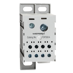 FSPDBs introduce a new level of safety and ease for installing power distribution blocks. An IP20 level of finger safe protection is achieved using the FSPDBs and thus eliminates the need for special covers or custom Plexiglas sheets to protect your panels. FSPDBs (sizes 1 to 4) simply snap onto 35mm DIN rail to provide the quickest installation. And since they are modular, you can form any number of poles desired. If multi-pole panel mounting is desired, multiple-pole assembly pins are available. FSPDBs provide a safe, convenient way of splicing cables, splitting primary power into a variety of secondary circuits or providing a fixed junction tap-off point.