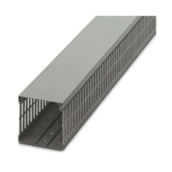 Phoenix Contact Cable Duct, Vented, Series: CD Series, 80 mm Width, 6-1/2 ft Length, 14 mm L x 6.5 mm W, 8 mm L x 4.5 mm W Slot, Rivet Mount, PVC, Gray